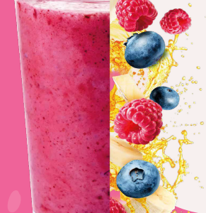 Ingredients: Blueberry, Raspberry, Banana, Arginine, L-Carnitine, Beta Alanine, Amino Complex / Lime, Celtic Sea salt, Cube Ice, Sugar free apple juice- 250ml