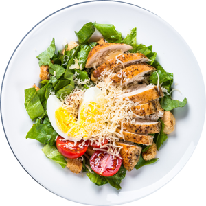 Salmon – Ingredients : Baked Salmon, Boiled Egg, Avocado, Cherry Tomato, Black Olives, Cucumber, Rocket Leaves, Lemon Vinaigrette Dressing, Salt & Pepper, Extra Virgin Olive oil